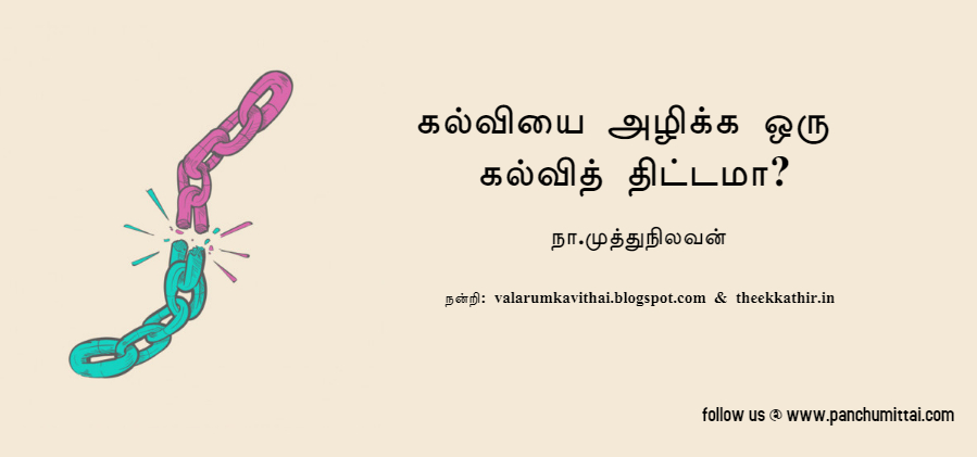 இவர்கள் நடைபாவாடை விரித்து வரவேற்கும் அமெ ரிக்காவில்கூட, பொதுக் கல்வி மாநில மற்றும் பிராந்திய அர சாங்கங்கள் மூலமே இயங்குகிறது. பன்னாட்டு வணிகத்தில் அமெரிக்காவை வரவேற்கும் இவர்கள், கல்வியில் மட்டும் ஏற்காதது, தமது “அகண்டபாரத” கனவை நிறைவேற்றும் தந்திர முயற்சியே என்பதன்றி வேறென்ன? மாநில உரிமை பறிப்பு என்பது ஜனநாயகவிரோதம் மக்கள் விரோதம் என்பதால் நாம் இதை எதிர்த்து முறியடித்தே ஆகவேண்டியுள்ளது